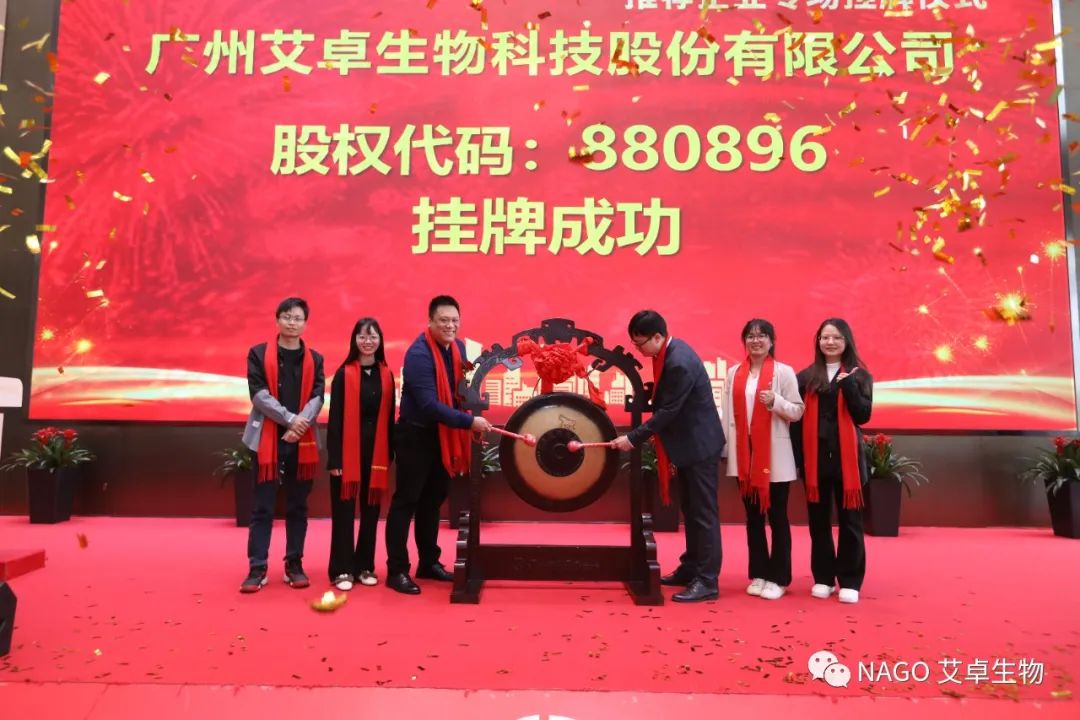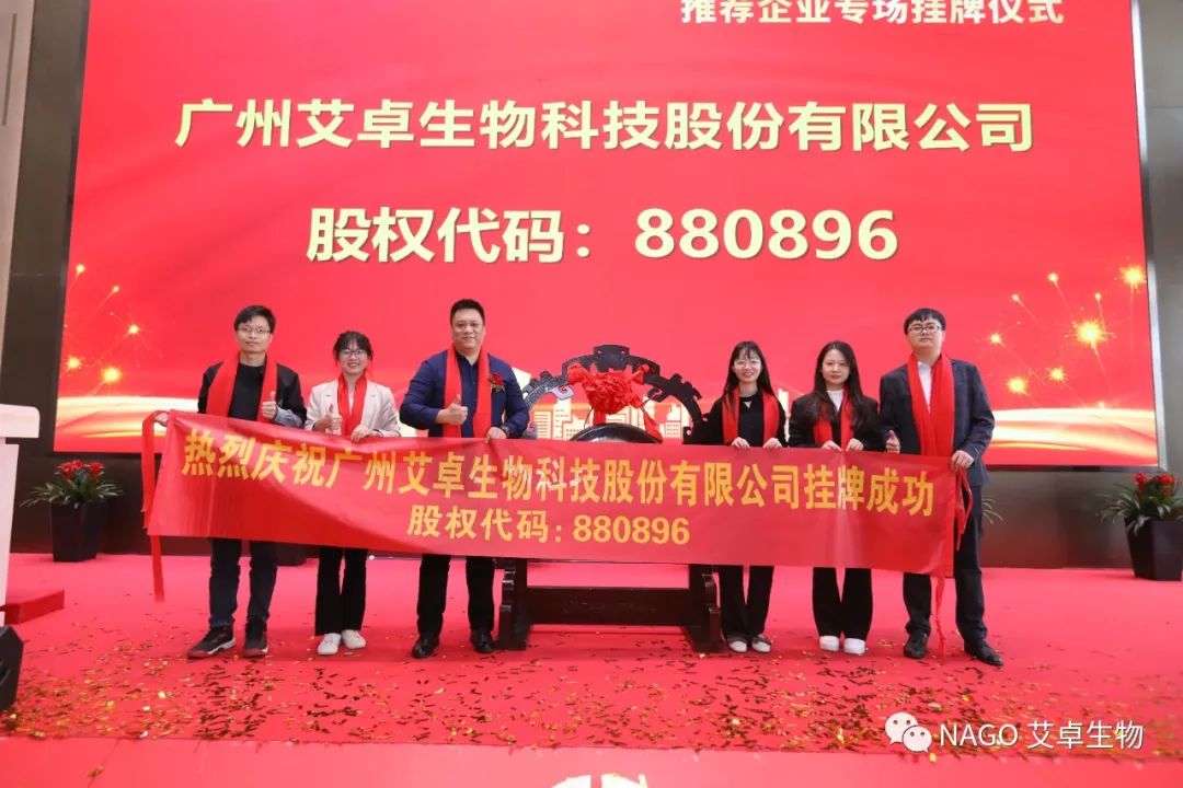 2023年3月3日,廣州艾卓生物科技股份有限公司在廣東股權(quán)交易中心新四板掛牌成功,股權(quán)代碼【880896】,此次掛牌成為艾卓發(fā)展史上又一重要里程碑。