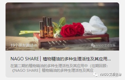 在第三期的植物精油的多種生理活性及其應用中,我們向大家介紹了精油的驅蟲殺蟲活性。本期文章我們繼續探討植物精油的抑菌抗菌活性。(往期回顧:《NAGO SHARE ▏植物精油的多種生理活性及其應用(3)》)